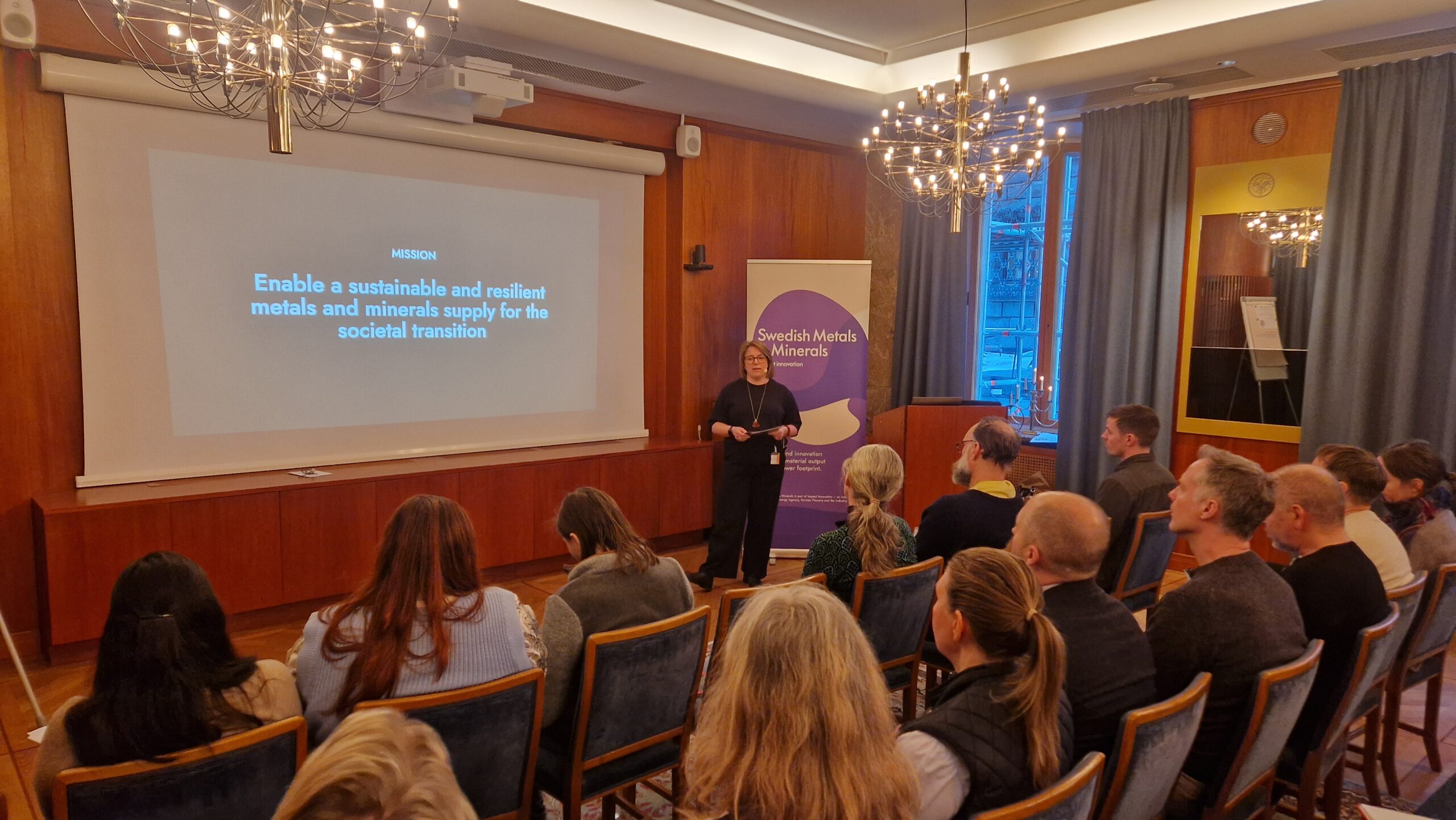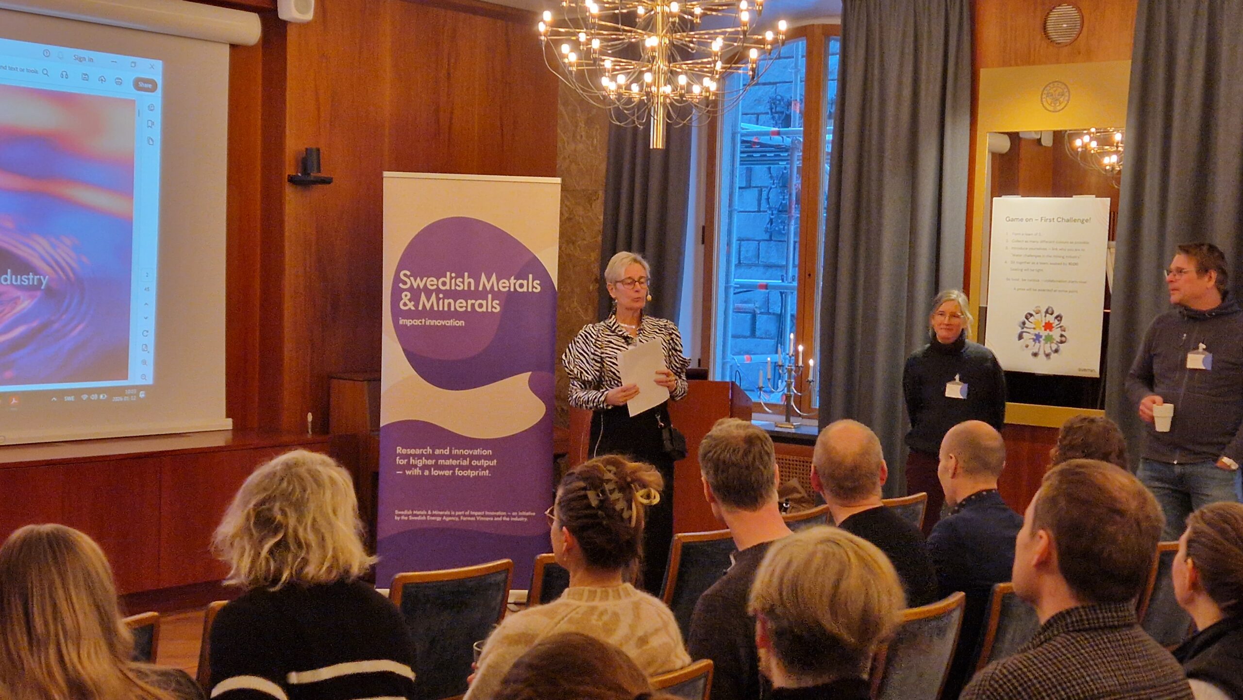 The seminar session concluded with presentations from two Impact Innovation programs. Maria Swartling, Program Director of Swedish Metals & Minerals, introduced the program’s mission, activities and relevance. Together with Lawrence Hooey, Head of Technological Innovation, she explained how stakeholders can engage in the program. Several ongoing research projects within Swedish Metals & Minerals were also briefly presented.