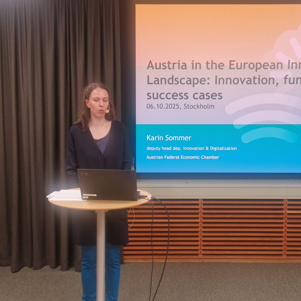 Sedan följde en internationell utblick med fokus på Österrike och Finland. Karin Sommer, Österrikes Handelskammare, förklarade landets förhållande till EU-forskning och hur de deltar i EU-gemensamma projekt. Riikka Virkunen, VTT, talade om hur Finland deltar i EU-forskning och VTT:s strategier för att hjälpa finska företag i europeiska forskningsprogram.