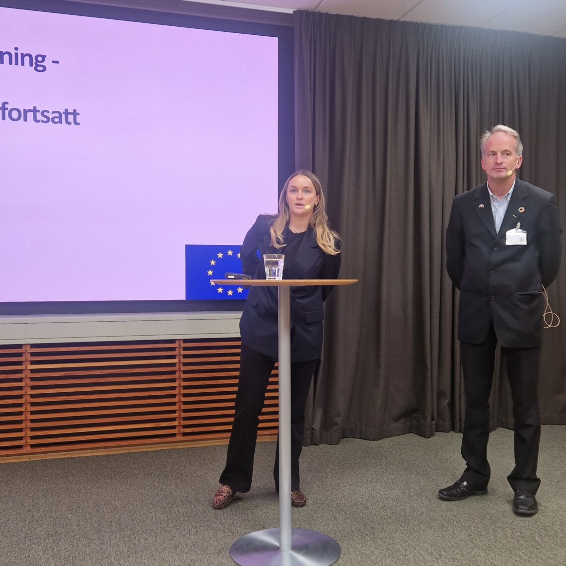 Eftermiddagens program inleddes med att Emma Wikner, Teknikföretagen och Johan Lindberg, Vinnova talade runt framtidens EU-forskning och om nya utmaningar och förslag i Bryssel. De gick även in på det nya förslagen om en europeisk konkurrenskraftsfond, som ska hjälpa till att säkra Europas industriella framtid.